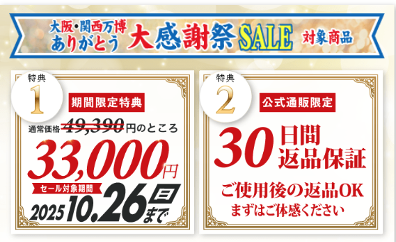 通常なら49,390円のミラブルゼロが33,000円で買える今回のセール。