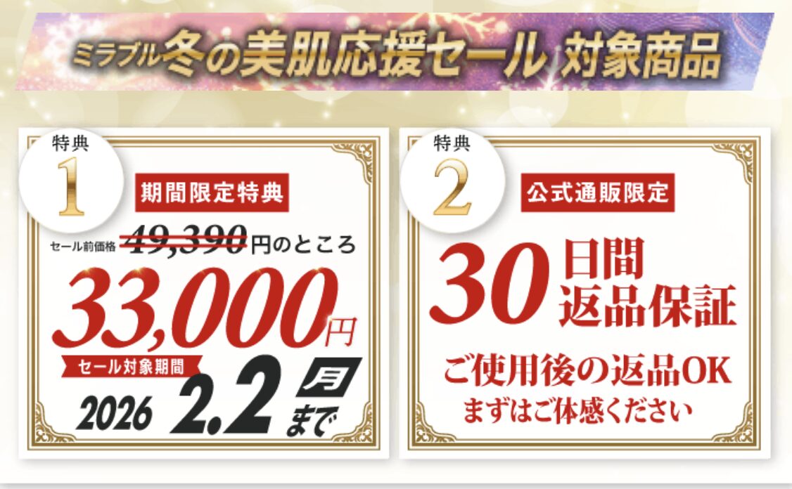 ミラブルゼロの割引キャンペーン・購入特典についてまとめました。