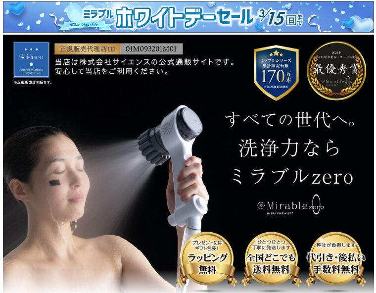 | ミラブルゼロ価格 (税込) | 33,000円 ※割引セール中 (3月15日までの期間限定) |